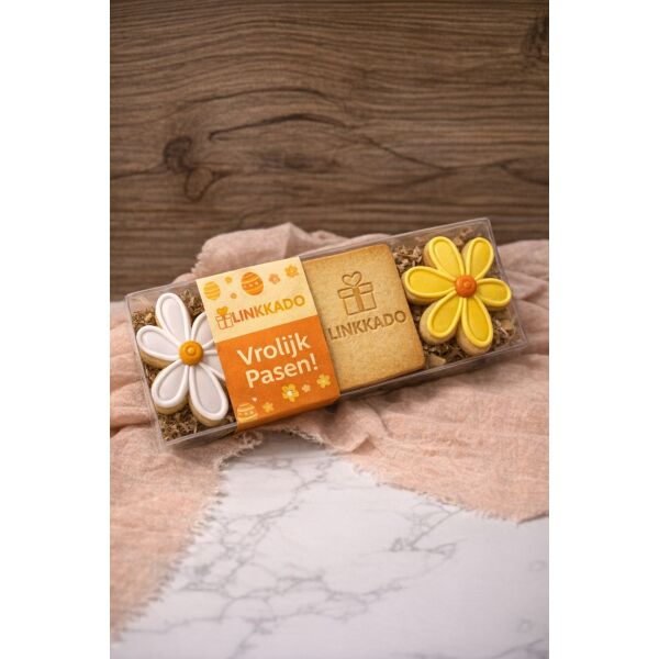 Bloemenkoekjes met glazuur en logo – transparant doosje
