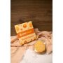 Doorzichtig doosje met twee glazuurkoekjes bloemen in een