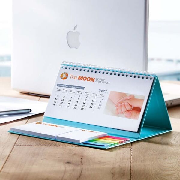 - Bureaukalender met harde kaft en memoblokje (gemaakt in de EU)