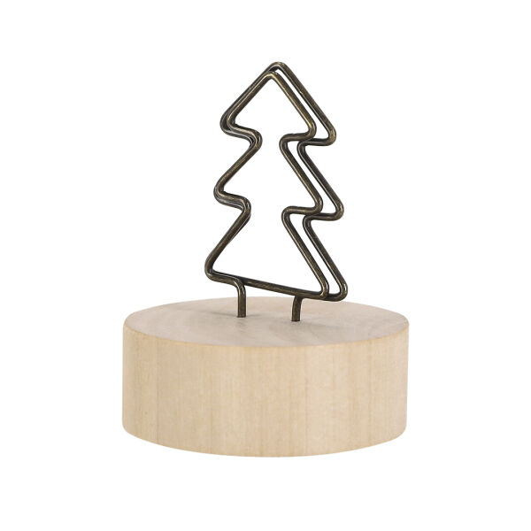 Clip met kerstontwerp. Met metalen clip, ideaal voor het vastzetten van notities, fotos, kaarten of als decoratief detail, met een basis van natuurlijk hout.