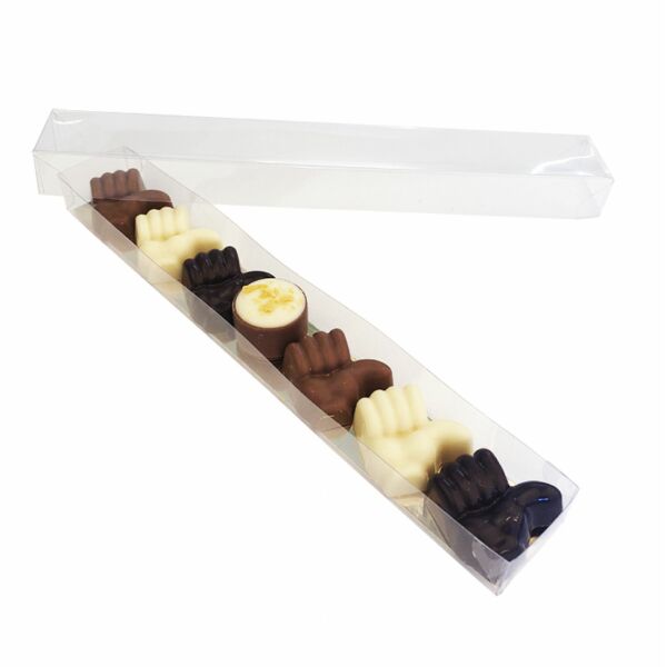 Geschenkdoosje gevuld met chocolade 'I Like' duimpjes en 1 luxe praline. Combinatie van de like chocolade met een luxe bonbon maken dit een mooi en exclusief cadeau. In de smaken melk, puur en wit. Doosje kunnen we personaliseren met een bedrukte banderol. Ook is het doosje goed verstuurbaar per post.