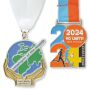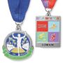 Ijzeren medailles van 50 mm in standaard vorm met jouw full colour doming in eigen ontwerp en met V-gestikte halslinten.