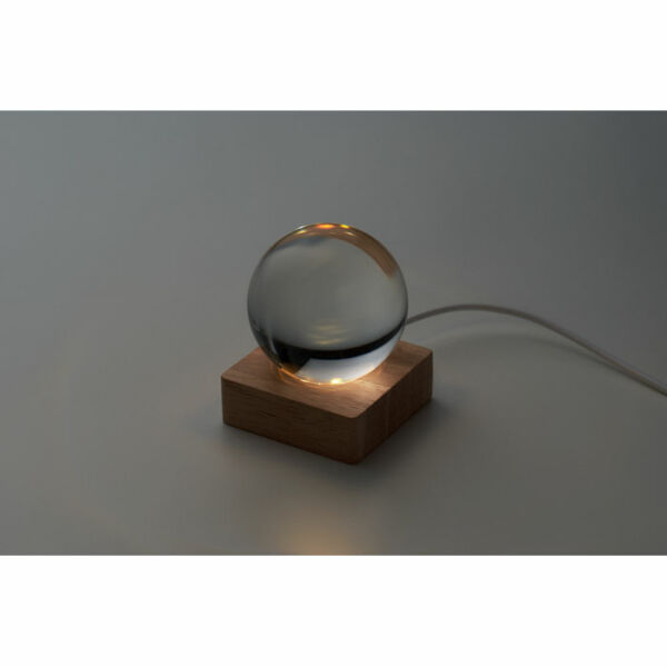 Glazen bol met LED-licht (100 lumen) op een rubberen houten voet. Inclusief een USB-oplaadkabel (90 cm). FSC 100% | W18.8 | FSC-C213206