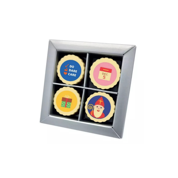 Een praline gemaakt van de allerbeste couverture van Barry Callebaut. De vulling is 'standaard' een hazelnootpraliné maar andere vullingen zijn op aanvraag mogelijk. De logopralines leveren wij in de smaken melk, puur en wit. Ze hebben een witte toplaag voor de full colour bedrukking. Elke bedrukking is mogelijk, logo's, teksten, foto's, QR-codes, noem maar op. Al onze chocolade voldoet aan de hoogste kwaliteitseisen. De smaak is subliem en zal u zeker verrassen.
