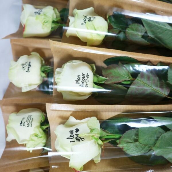 Geef een blijvende indruk met een luxe, levende roos voorzien van jouw logo, boodschap of slogan. Dit stijlvolle en persoonlijke geschenk is perfect voor evenementen, zakelijke gelegenheden of als bijzondere blijk van waardering. De roos blijft 10 tot 14 dagen mooi en wordt geleverd in een krafthoesje voor eenvoudig weggeven. Dankzij geavanceerde technieken blijft de bloem langer vers, zonder dat de personalisatie de kwaliteit beïnvloedt. Interesse? Neem contact met ons op voor meer informatie over personalisatie en verzending!