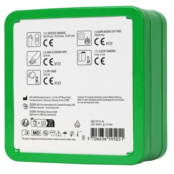 Deze basis EHBO-kit is praktisch en onmisbaar voor thuis, in de auto of onderweg, zodat je voorbereid bent op kleine verwondingen en noodgevallen. Het bevat 12 wasbestendige pleisters, 4 huidreinigingsdoekjes, 2 wattenstaafjes, 1 elastisch verband en 2 brandwondenkompressen. Alle producten in de kit voldoen aan de geldende EU-voorschriften en garanderen veilige en betrouwbare zorg wanneer je die het hardst nodig hebt. Geleverd in een herbruikbare en recyclebare tinnen doos.