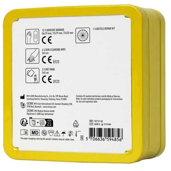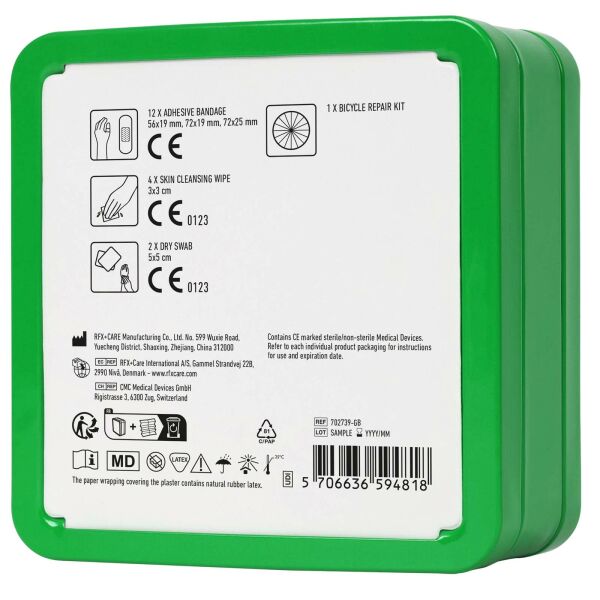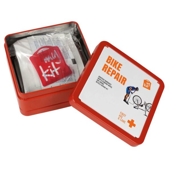 Deze compacte set is de ideale kit voor elke fietstocht en houdt je onderweg voorbereid op kleine verwondingen en lekke banden. Het bevat 12 wasbestendige pleisters, 4 huidreinigingsdoekjes, 2 wattenstaafjes en 1 reparatieset. Alle meegeleverde EHBO- en verzorgingsproducten voldoen aan de geldende EU-regelgeving en zorgen voor een veilige en betrouwbare ondersteuning tijdens je fietsavonturen. Geleverd in een herbruikbare en recyclebare tinnen doos.