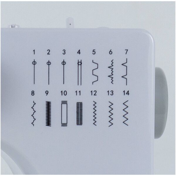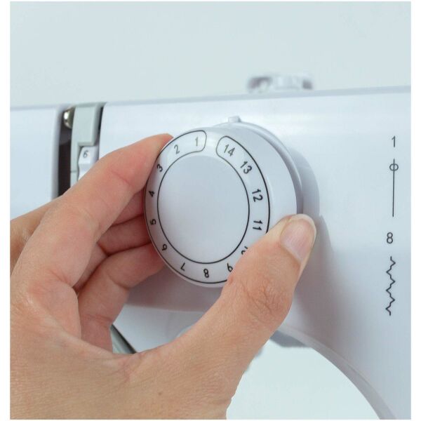 Deze naaimachine biedt 14 steekpatronen om te variëren, waarbij je de breedte en lengte van elke steek kunt aanpassen. Hij bevat ook een rekbare zigzagsteek, ideaal voor breisels, zomen en afwerken. Je kunt zowel vooruit als achteruit naaien, de draad automatisch oprollen, afknippen, de draadspanning aanpassen en de steken regelen. Dankzij de directe snelkoppeling naar het spoeltje plaats je dit snel en eenvoudig.