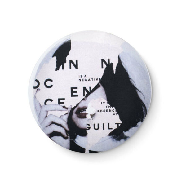 Full color button in ronde vorm en een veiligheidsspeld op de achterzijde.