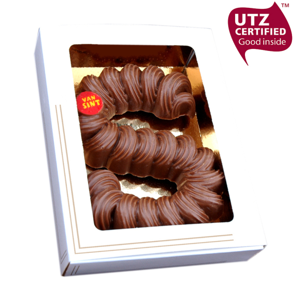 Chocoladeletter 135 gram Van Sint Topkwaliteit Belgische chocolade Smaak: melk, puur en witte chocolade Letter gestreept gedecoreerd Schildje op letter met "Van Sint" Afmetingen: 120 x 80 x 19 mm LI6022NK Afmetingen geschenkdoos: 150 x 112 x 26 mm Doos leverbaar in wit met venster