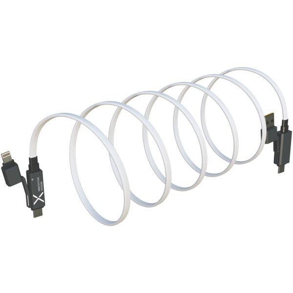 Supersnelle 60W magnetische oplaadkabel die smartphones, tablets en laptops van stroom voorziet. De 1-meter platte kabel heeft Type-C- en Lightning-connectoren, snoeren gemaakt van gerecyclede plastic flessen en duurzame eindkappen van zinklegering. Met dubbele USB-A- en USB-C-ingang is hij 100% compatibel met de nieuwste computermodellen. Volledig compatibel met Apple CarPlay en Android Auto. Personalisatie is mogelijk via lasergravure op de zinken eindkap. Wordt geleverd in een recyclebare TPU-zak met een gerecycled papierinzet.