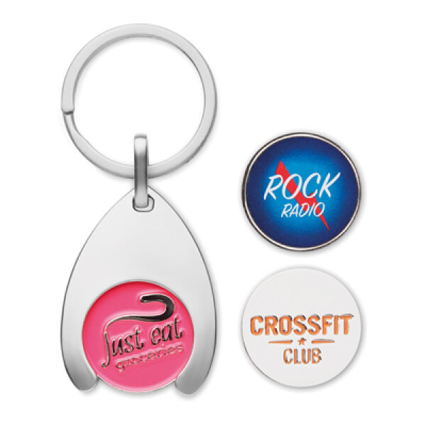MOQ = 250 Winkelwagenmuntjes. Keuze uit 3 verschillende gepersonaliseerde munten: gelakt emaille met een verzonken oppervlak, full colour bedrukt of…