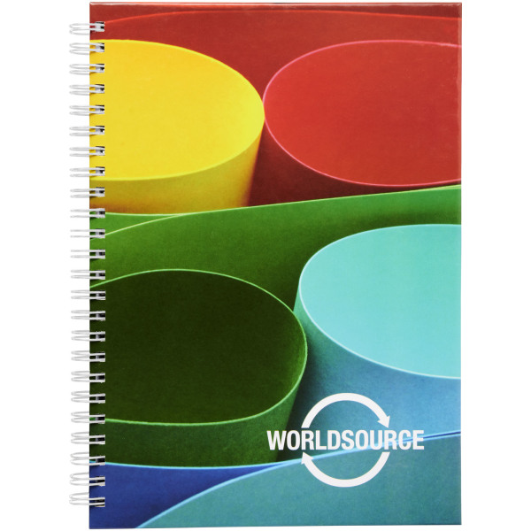 Bevat 80 vellen (80 g/m2) blanco papier en heeft een zwarte of witte spiraal. Verkrijgbaar in 3 formaten: A4, A5 en A6. Decoratie in kleur mogelijk op de omslag, op elk blad, en de voor- en achterkant.